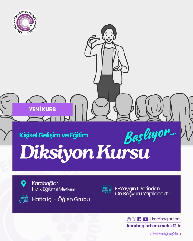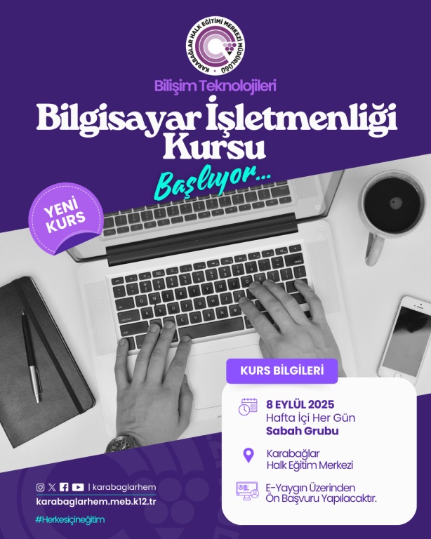 2025-2026 EĞİTİM ÖĞRETİM YILI KARABAĞLAR HALK EĞİTİM MERKEZİ'NDE AÇILMASI PLANLANAN KURSLARIMIZ İÇİN KAYITLARIMIZ BAŞLAMIŞTIR.