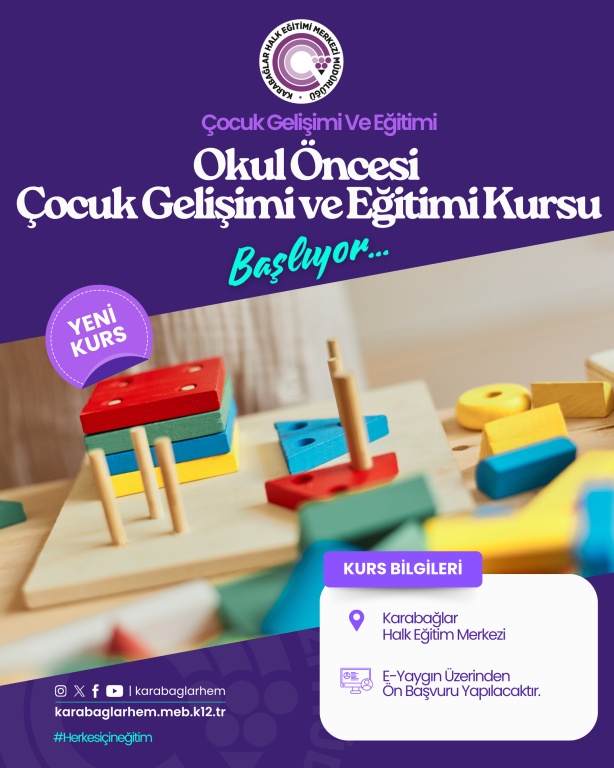 2025-2026 EĞİTİM ÖĞRETİM YILI KARABAĞLAR HALK EĞİTİM MERKEZİ'NDE AÇILMASI PLANLANAN KURSLARIMIZ İÇİN KAYITLARIMIZ BAŞLAMIŞTIR.